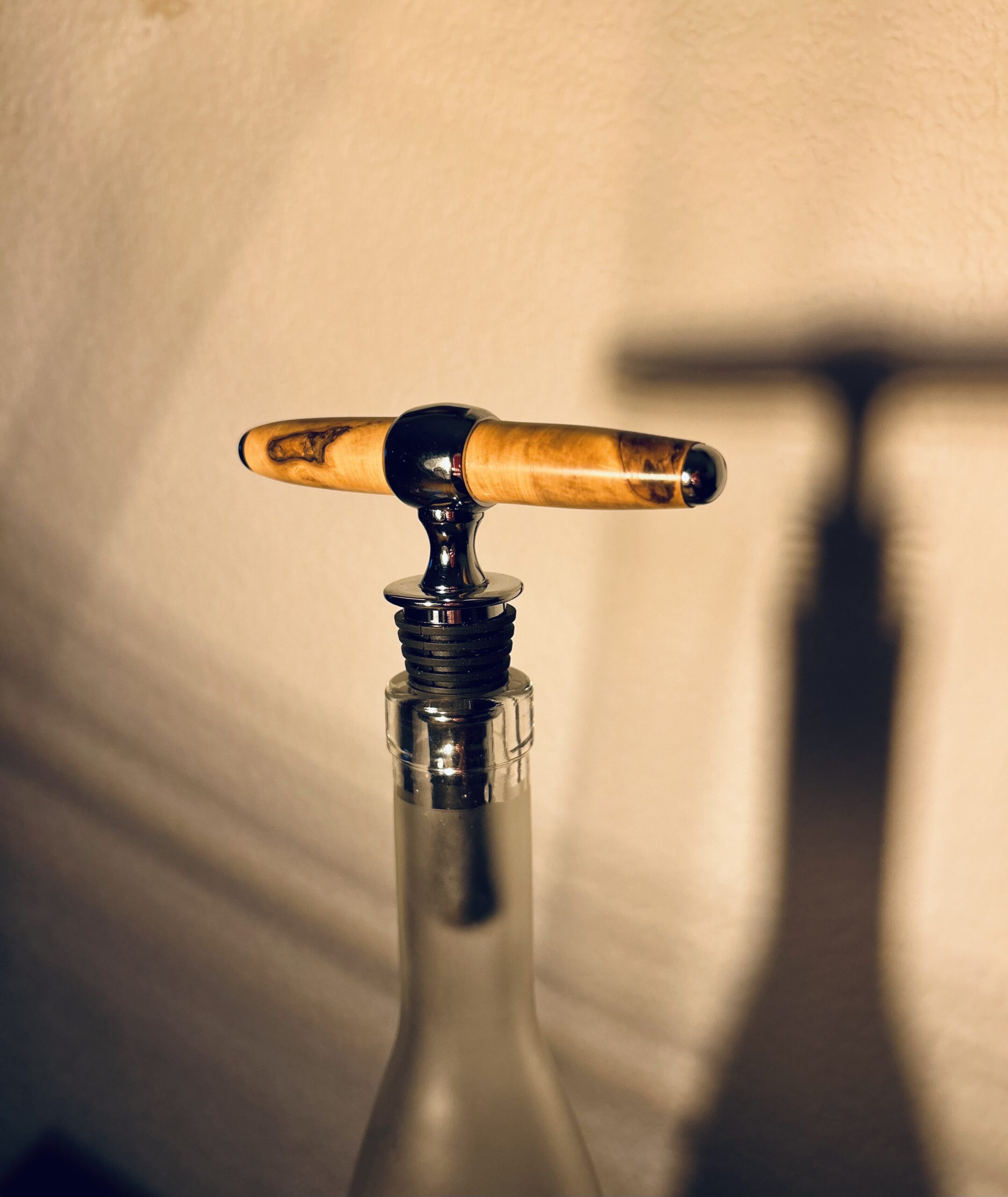 Ce tire-bouchon de luxe 2-en-1 est un accessoire artisanal alliant ouverture et conservation du vin. Il fait à la fois tire-bouchon et bouchon de bouteille, permettant de refermer élégamment vos bouteilles après ouverture.